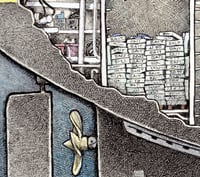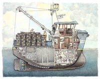 This is a sturdy Oregon Dungeness crab boat making its way out to the grounds. The crew is on deck getting the gear ready, and hopefully they'll be able to set their pots soon!